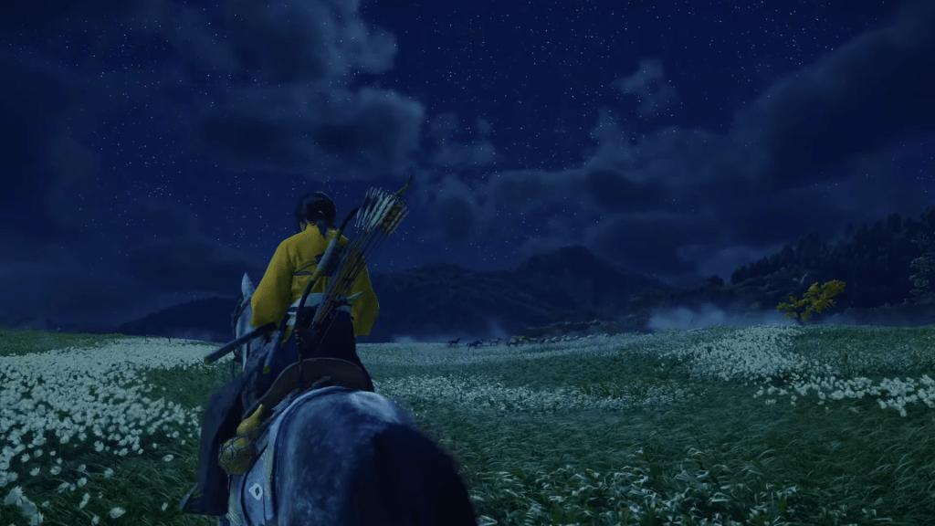 La animación es de otro nivel. Las transiciones de Atsu entre armas son fluidas y creíbles. El combate tiene un peso que se siente, y la captura de movimiento en las cinemáticas transmite la emoción contenida de la protagonista con una sutileza excepcional. Son los pequeños detalles los que venden la inmersión: la forma en que Atsu aprieta su capa alrededor de su cuerpo cuando el viento arrecia, la condensación de su aliento en el aire frío, el hielo formándose en su armadura tras vadear un río, o la forma en que la sangre de los enemigos se congela y oscurece sobre el hielo. El rendimiento es sólido, ofreciendo un modo a 60 fotogramas por segundo que se mantiene estable incluso en los combates más caóticos, algo esencial para la naturaleza reactiva de su jugabilidad. Ghost of Yōtei no es solo un juego visualmente impactante; es una obra de arte técnica que utiliza cada herramienta a su disposición para sumergir al jugador en su hermoso y despiadado mundo.