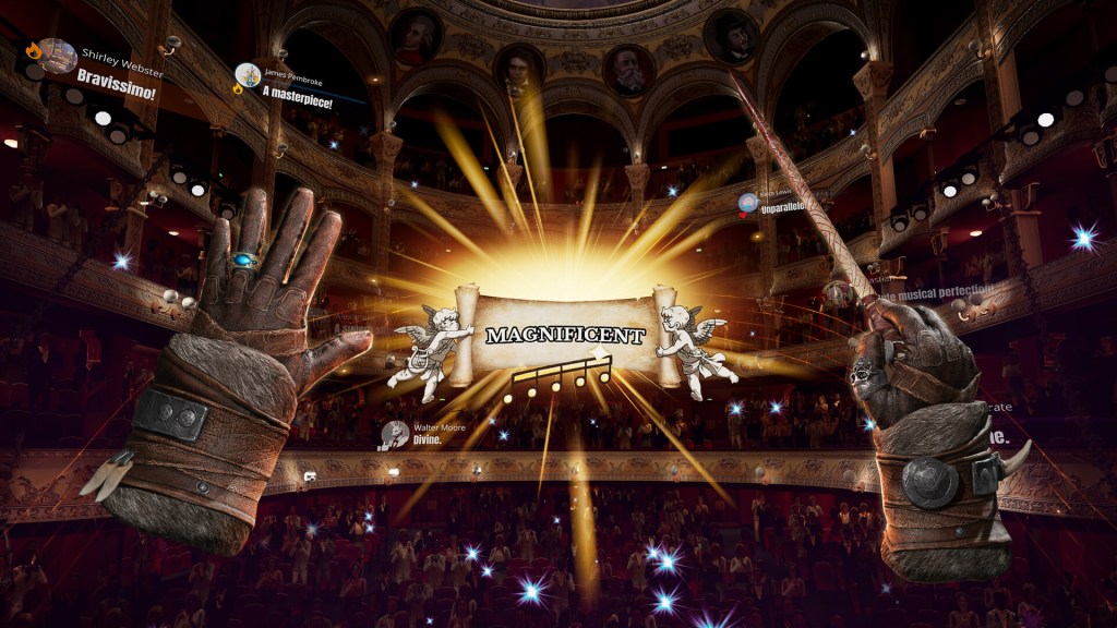 En conjunto, Maestro ofrece una experiencia distinta, atractiva y bien ejecutada. La historia, si entendemos por tal la progresión como director y la “actuación” que se propone más que una narrativa convencional, cumple con creces al situar al jugador en el escenario y darle control real sobre la música. En jugabilidad destaca por su propuesta innovadora: dirigir una orquesta en VR mediante gestos manuales es algo que no se encuentra con facilidad, y el juego lo realiza con buena ambición y bastante acierto, aunque no sin pequeños fallos técnicos o de reconocimiento gestual que pueden restar fluidez en momentos puntuales. Gráficamente está a la altura de lo que se espera en un juego indie de RV: inmersivo, bien diseñado, aunque sin alcanzar cotas de iluminación cinematográfica o ultra realismo puntero. Sonoramente, brilla: la música, los efectos, la respuesta a tus acciones, todo contribuye a hacer tangible la sensación de estar al frente de una orquesta real.