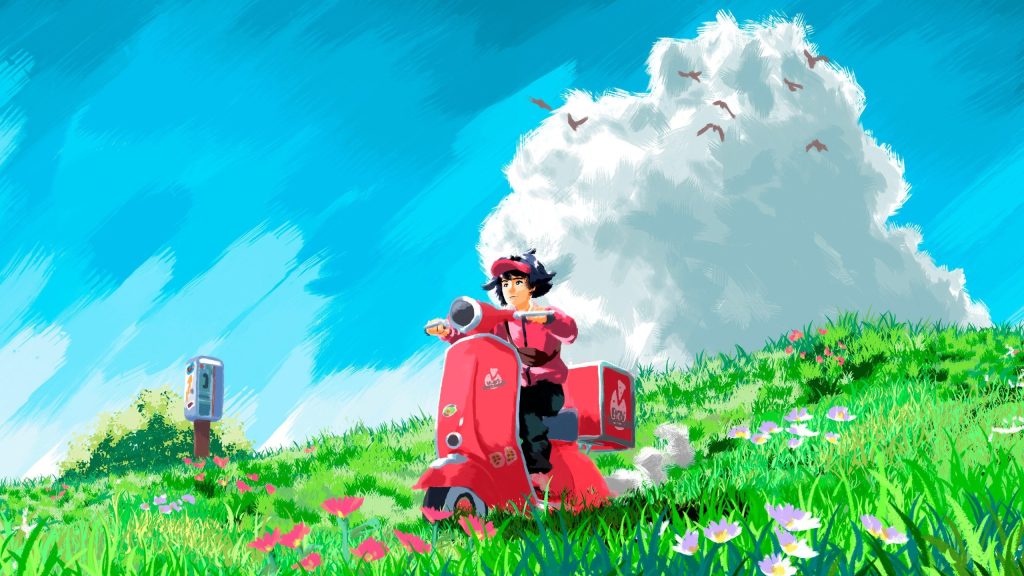 Pasando a la jugabilidad, este es el núcleo sobre el que se articula A Pizza Delivery. El jugador controla a B en su moto (una especie de scooter tipo Vespa), explorando un mundo que combina paisajes abiertos con espacios más íntimos, casi oníricos. La conducción no es un simple trámite: es un medio para provocar reflexiones, romper momentos de soledad o alcanzar lugares simbólicos. No obstante, no se trata de un simulador de conducción realista: el manejo es suave, sin complicaciones extremas, lo cual encaja con el enfoque meditativo del título.