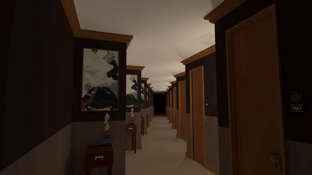 La jugabilidad de Hotel Infinity se construye sobre una base sencilla, pero cuidadosamente diseñada. El eje principal es la exploración en primera persona de un entorno que se repite y se transforma de manera constante. No hay combates ni sistemas de progresión tradicionales, lo que sitúa al jugador en una posición de vulnerabilidad permanente. La experiencia se centra en observar, escuchar y avanzar, asimilando los cambios del entorno y aprendiendo sus reglas implícitas.