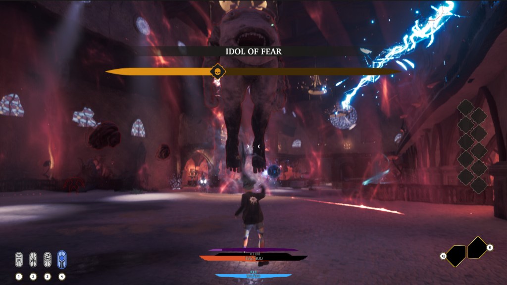 Desde el primer momento queda claro que la jugabilidad es el corazón de la experiencia. El juego se enfoca en combate frenético en tercera persona donde el jugador despliega magia, proyectiles y ataques cuerpo a cuerpo con una sensación de velocidad y reacción inmediata, apoyándose en esquivas, movimientos rápidos y posicionamiento táctico. El diseño de combate está influenciado por mecánicas de bullet hell: los enemigos generan patrones de proyectiles densos que demandan no solo precisión sino también reflejos rápidos y capacidad de anticipación.